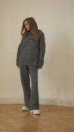 М’яка в’язка забезпечує затишок, а фасон костюма — свободу рухів і стильну посадку. Штани злегка розширюються донизу, створюючи ефект подовження ніг, а худі додає образу актуальної недбалості в стилі oversize.
