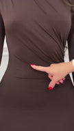 Завдяки м’яким зборкам по талії чи стегнах (уточни розміщення), сукня формує ідеальні лінії силуету, а довжина міді додає стриманої елегантності. Підійде для будь-якої пори року — поєднується з підборами, чоботами чи навіть кедами.